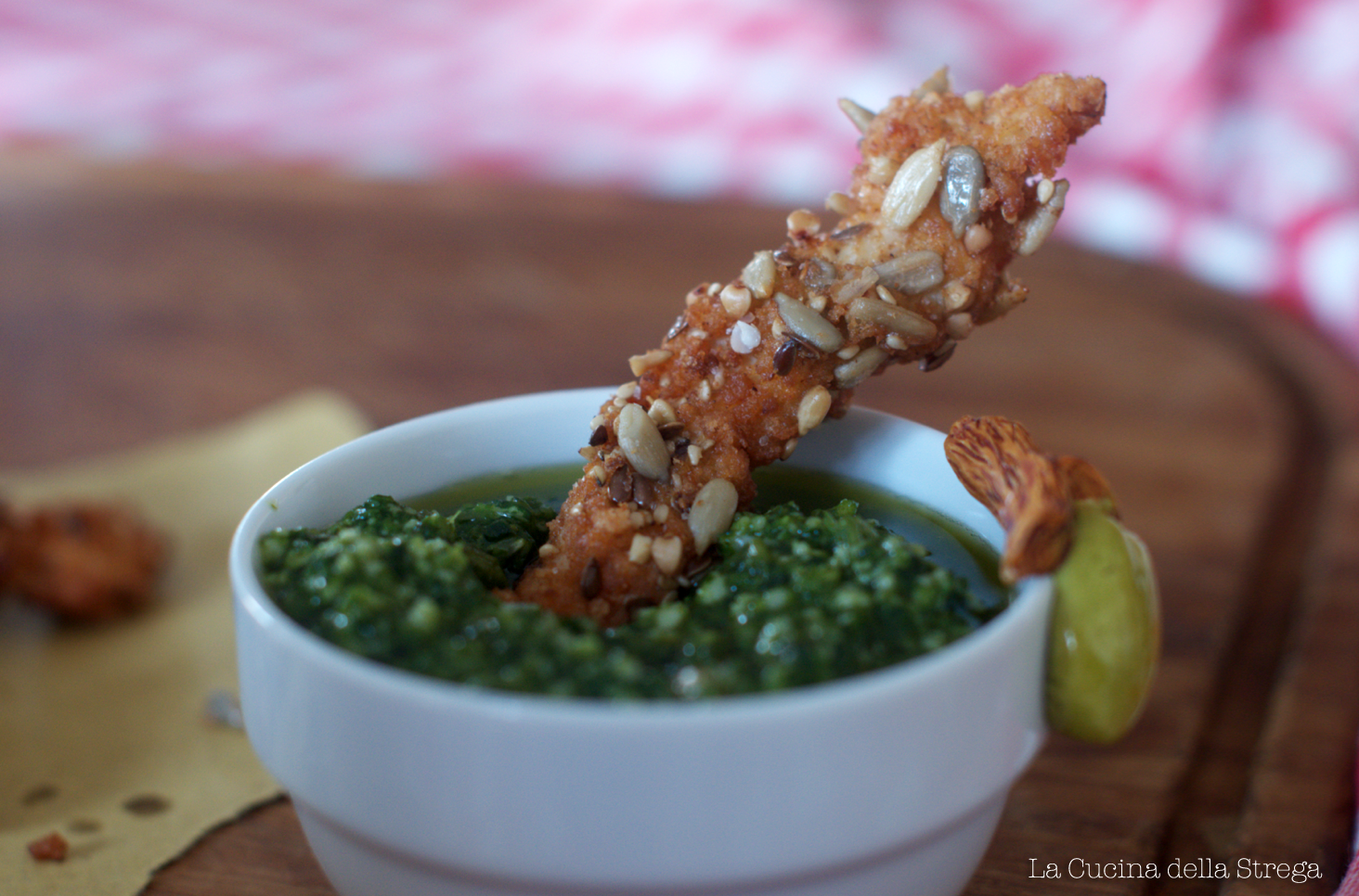 Io ho fatto questa salsa verde, ma questi deliziosi finger si prestano ad essere “inzuppati” in salse di vario tipo….. maionese, senape, o perchè no… yougurt!